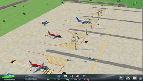 Build:Start your process by carefully planning out wide spaces inside the terminal. Continue on with a thinking through the layout of the airport apron, make smart taxiway networks by connecting aircraft stands with runways. And build the rest of the airport in all other areas of management like Check-in counters, security checks, boarding gates, etc.