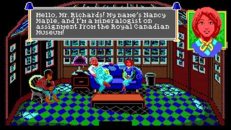 "The Crimson Diamond is a text parser mystery adventure game where you play as amateur geologist and reluctant detective Nancy Maple. Follow Nancy as she travels north to the fictional ghost town of Crimson, Ontario to investigate the discovery of a massive diamond in the area. Eavesdrop on conversations to learn more about the eccentric cast of characters who find themselves gathered at Crimson Lodge. Explore the lodge and its environs to evaluate the diamond claim, and maybe solve a mystery or two along the way! The Crimson Diamond is a cozy mystery that encourages reading and engaging in the story over devious arcade challenges."